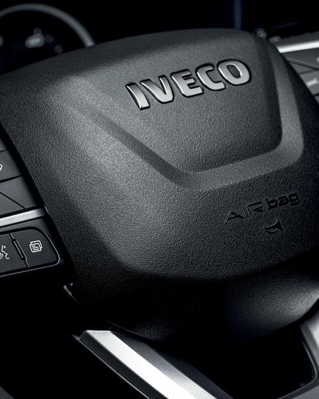 Der DAILY 4x4 ist mit Fahrer- und Beifahrerairbags ausgestattet, die speziell für den Gelände-Einsatz parametriert sind. Hartes Fahren im Gelände kommt dabei aber nicht zu kurz. Dadurch verursachte Stöße und Vibrationen werden von echten Gefahrensituationen unterschieden und sorgen so im Bedarfsfall für einen sicheren Einsatz der Systeme. Ungewollte Eingriffe des Systems wird dabei vorgebeugt.