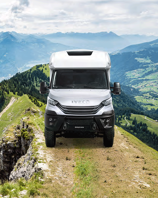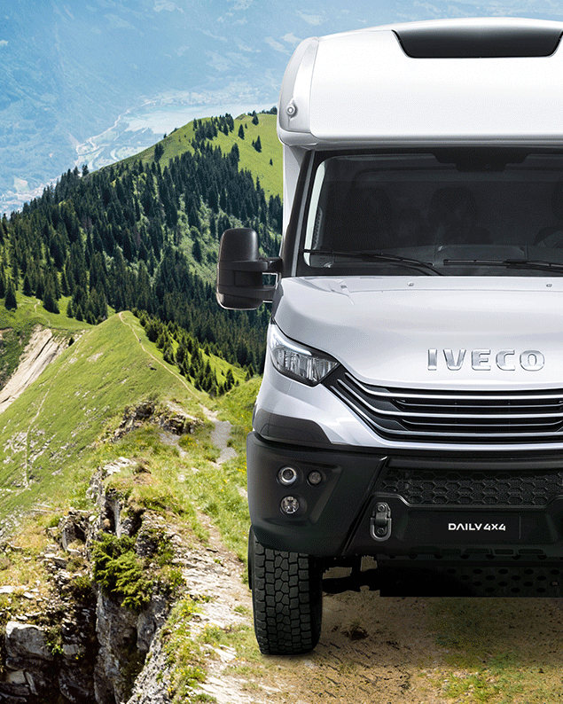 Führt Ihr Urlaub Sie abseits der üblichen Wege, ist der DAILY 4x4 die Lösung für Sie: er bringt Ihr mobiles Traumhaus an die Orte Ihrer Wünsche und überwindet dabei mühelos jede Schwierigkeit auf jedem Terrain. Wählen Sie den für Sie passenden DAILY 4x4 aus dem Doppelangebot von Kastenwagen und Fahrgestellkabine mit All-Road- und Off-Road-Versionen oder dem einzigartigen Modell mit 7,0 Tonnen zulässigem Gesamtgewicht und 8-Gang-HI-MATIC-Getriebe, das extreme Robustheit mit ultimativem Komfort verbindet.