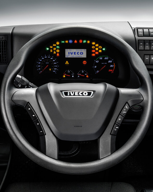 Der Eurocargo ist serienmäßig mit LED-Tagfahrlicht (DRL) ausgestattet, um Fahrsicherheit und Sicht zu verbessern. Xenon-Scheinwerfer sind als zusätzliches Extra sind erhältlich.