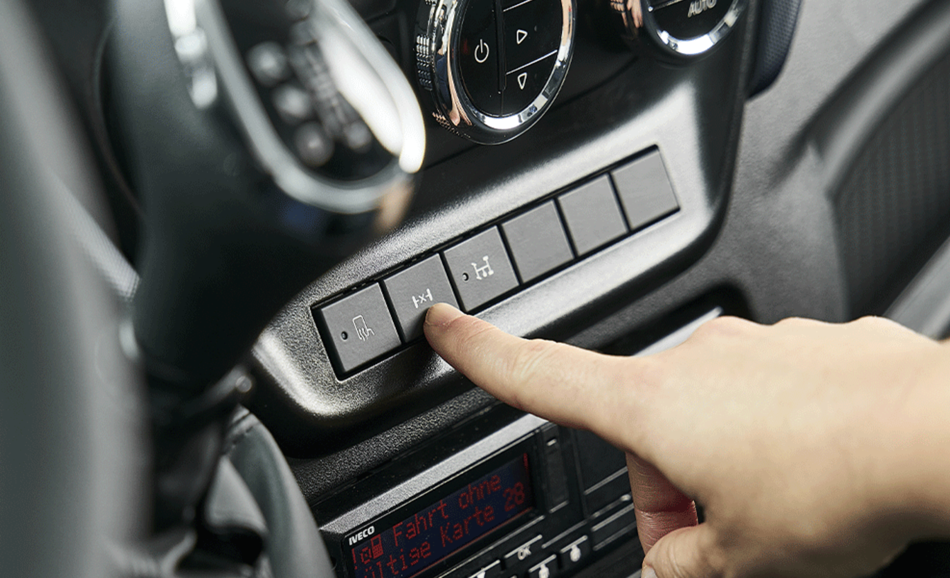 Die mechanische Differenzialsperre verschafft dem Reisemobil perfekte Traktion in jeder Situation. Ihre Kunden meistern damit uch schwierige Untergründe wie Schlamm und Schnee so sicher und komfortabel wie in einem Geländewagen. Ihre Aktivierung erfolgt über den ergonomischen Schalter am Armaturenbrett: Die Beschleunigung auf glattem Untergrund wird optimiert und die Antriebsachse in eine starre Position gebracht, um ein einseitiges Durchdrehen der Räder wirksam zu verhindern. Sie hilft damit auch, den Reifenverschleiß zu verringern.