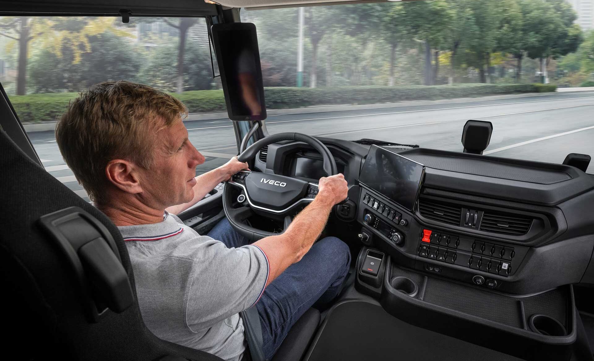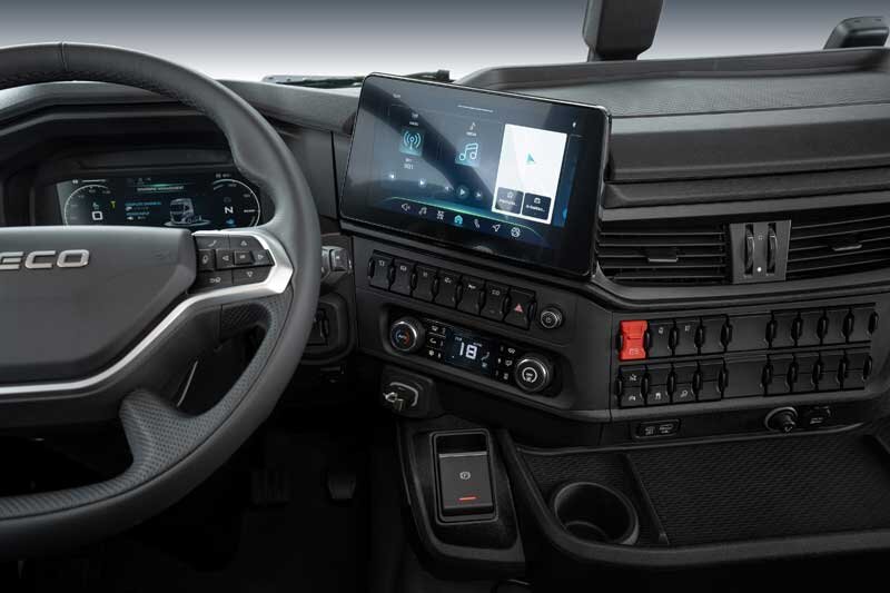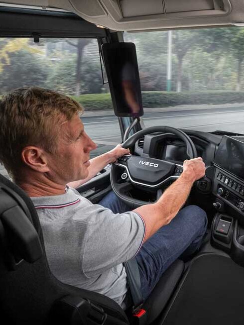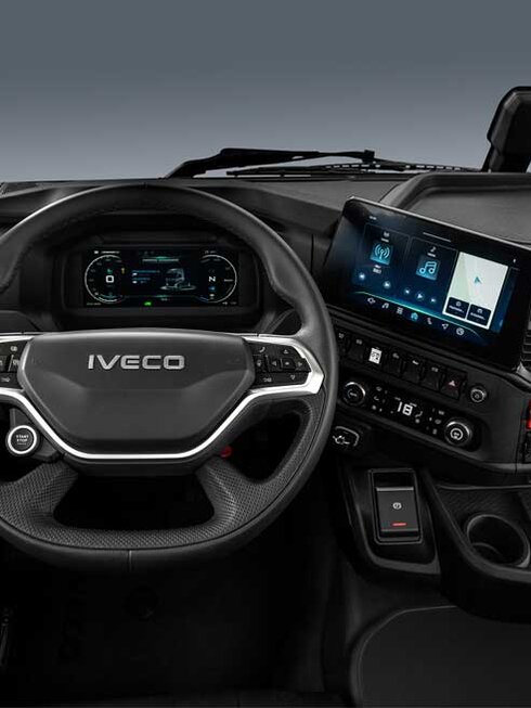 Komfort und Funktionalität, für die der Iveco S-Way bekannt ist, ohne Geräusche und Vibrationen des Antriebsstrangs. Die Instrumente und Bedienelemente sind so optimiert, dass der Fahrer sein Fahrzeug optimal nutzen kann.