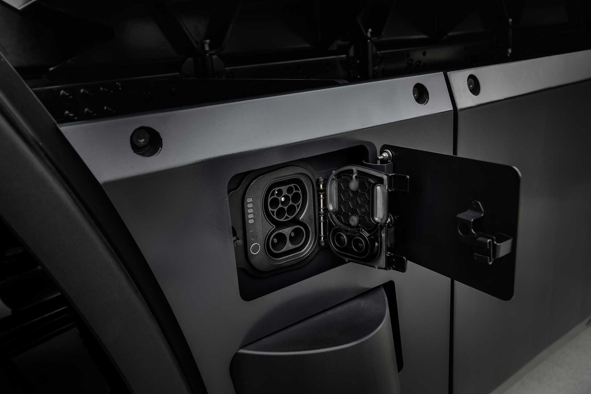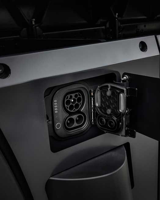 Der CCS-Ladestecker vom Typ 2, der sich bequem an der linken Seite hinter dem Fahrerhaus befindet, ermöglicht das Laden mit Gleichstrom mit bis zu 350 kW. Dadurch kann das Fahrzeug in kurzer Zeit wieder aufgeladen werden und mit 5 Akkupacks wird eine Ladung von 20 % bis 80 % während der gesetzlich vorgeschriebenen 45-minütigen Fahrpausen erreicht.