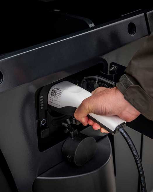 Laden Sie Ihr Fahrzeug mit einem Gleichstromladegerät auf. Sie müssen nur die elektrische Feststellbremse aktivieren und das Fahrzeug an die Ladestation anschließen. Sie können sich für ein langsames Laden über Nacht entscheiden und Ihr Fahrzeug für den nächsten Tag bereit haben, oder alternativ für eine Hochleistungsladung während der obligatorischen Pause des Fahrers, um die Reichweite des Fahrzeugs in kürzester Zeit zu erhöhen.